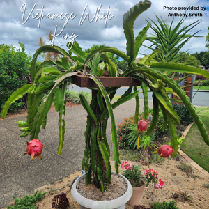 White King is a vigorous Vietnamese white dragon fruit variety from the species Hylocereus undatus. It is self-fertile and self-pollinating, making it an easy and reliable plant for home growers.